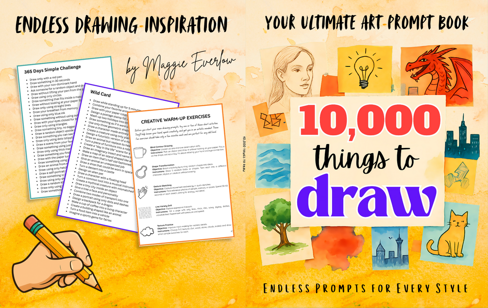 If you’ve ever stared at a blank page with no idea what to draw, this fixes that. No boring, recycled prompts, just 10,000 fresh, themed ideas that are actually fun. Every prompt was chosen to be different, interesting, and actually fun to draw.