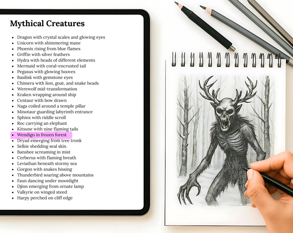 Jumpstart your sketchbook with 10000 unique drawing prompts across 30+ categories. From characters to creatures to chaos, this bundle turns blank pages into creative momentum.